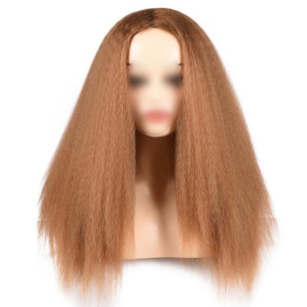 Afro Yaki Hair Straight Curly Wigs Khaki Long Full Wig Fluffy Synthetic Hair Wigs for Daily Wear, 24inch Afro Yaki Hair Straight Curly Wigs Khaki Long Full Wig Fluffy Synthetic Hair Wigs for Daily Wear, 24inch