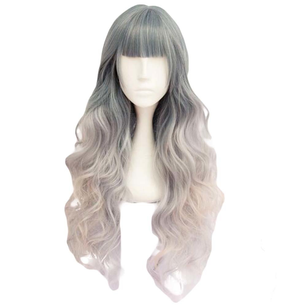 Ash Blue Fading Light Pink 65 cm 2 Tone Cosplay Full Wig Long Curly Hair Wig Halloween Dress Up
