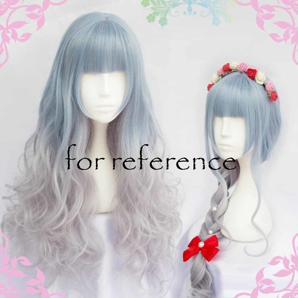 Fading Blue Ash Grey 65 cm 2 Tone Cosplay Full Wig Long Curly Hair Wig Halloween Dress Up