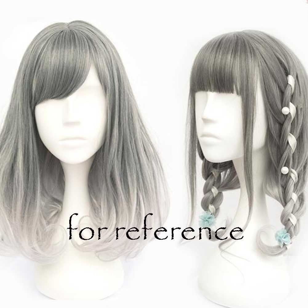 Fading Steel Gray 35 cm 2Tone Cosplay Full Wig Long Curly Hair Wig Rinka Haircut Halloween Dress Up