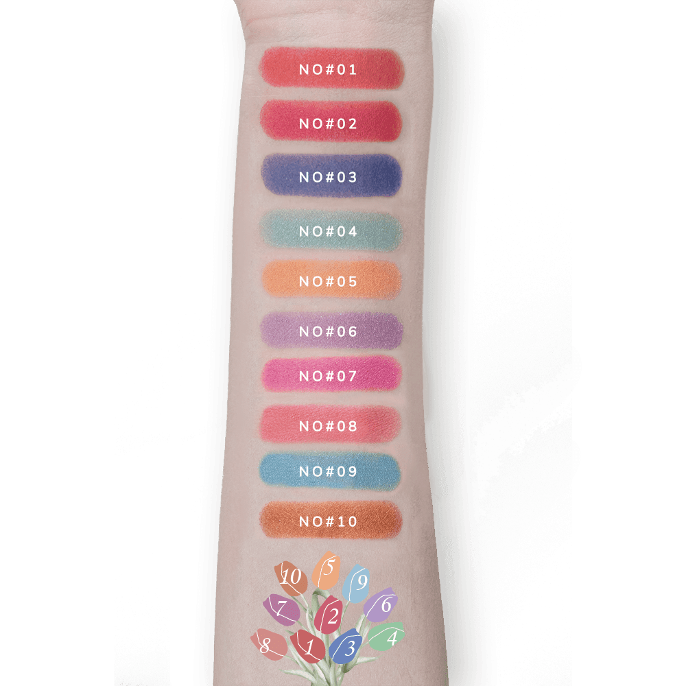 The flower eyeshadow and blush palette is a collection of 5 high-performance eyeshadows and 5 blushes; from nude warm tone to bright colourful red. This flower eyeshadow and blush palette is perfect for your everyday  looks.