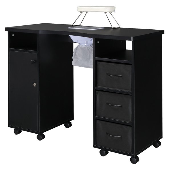 MDF Double Cabinet 3 Drawers 1 Door With Fan Manicure Table Black MDF Double Cabinet 3 Drawers 1 Door With Fan Manicure Table Black