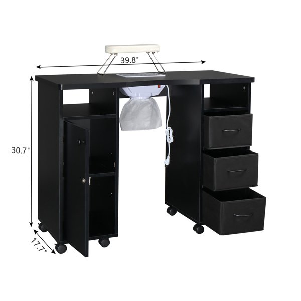 MDF Double Cabinet 3 Drawers 1 Door With Fan Manicure Table Black