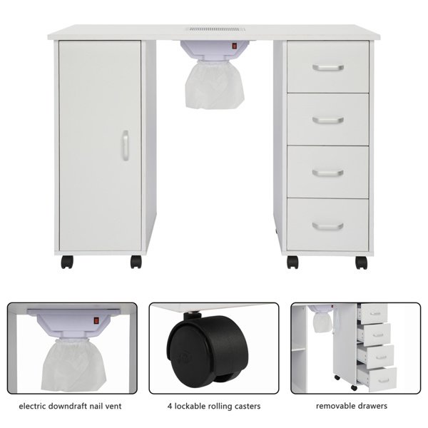 MDF Single Door 4 Drawers With Fan White Nail Table