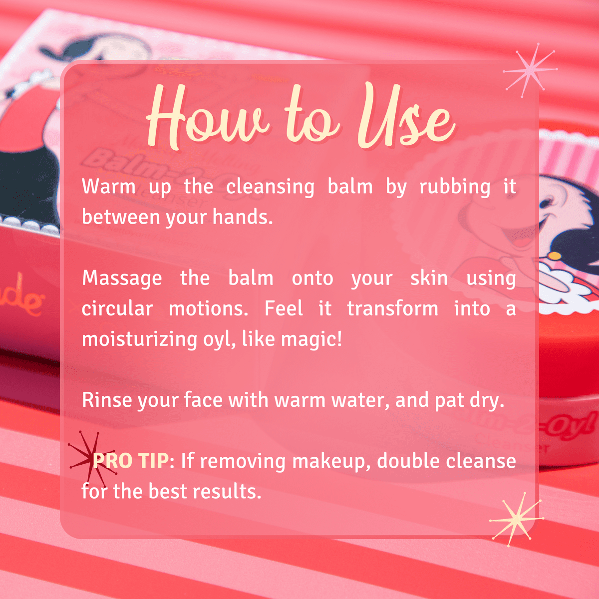 Simplify your skincare routine with our transformative Makeup Melting Balm-2-Oyl Cleanser! Simply scoop,apply, massage onto your skin and watch your makeup melt off. Add water to emulsify, and rinse for clean, hydrated skin.