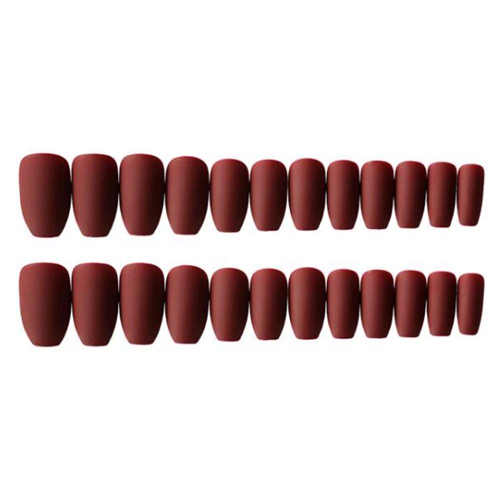 Pure Color Fake Nails Full Cover Party Prom Long False Nails Art Tips Set; Matte Wine Red Fake Nails Pure Color Fake Nails Full Cover Party Prom Long False Nails Art Tips Set; Matte Wine Red Fake Nails