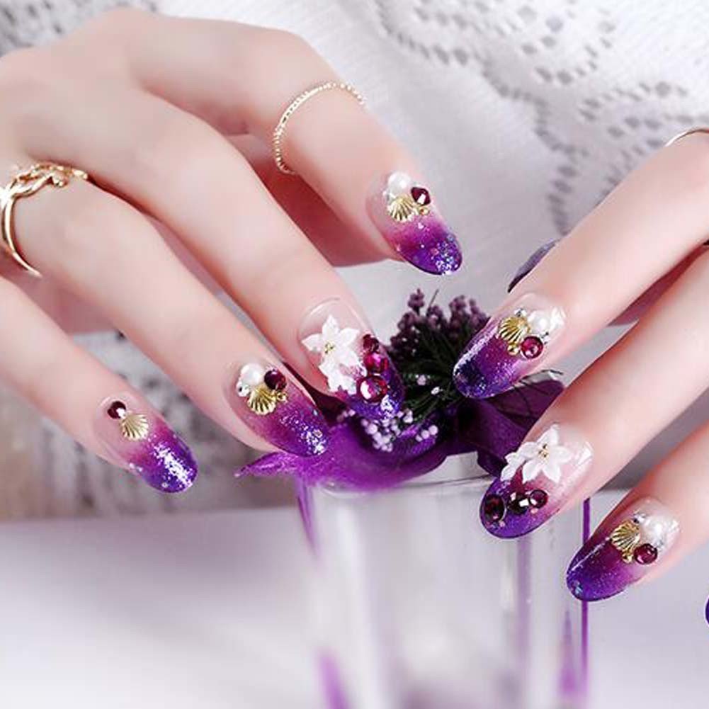 Purple Flower Beads False Fingernails Artificial False Nails Tips Wedding Nail Art Decoration Fake Nails Purple Flower Beads False Fingernails Artificial False Nails Tips Wedding Nail Art Decoration Fake Nails